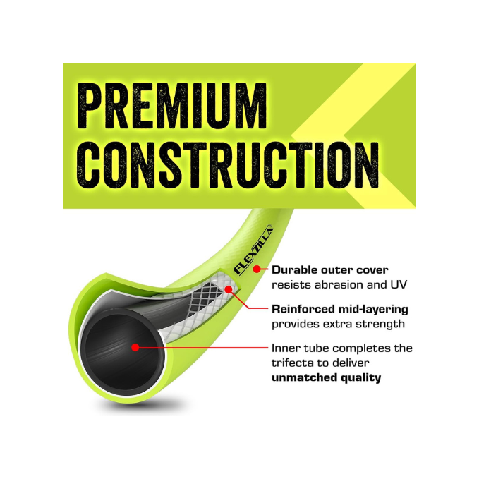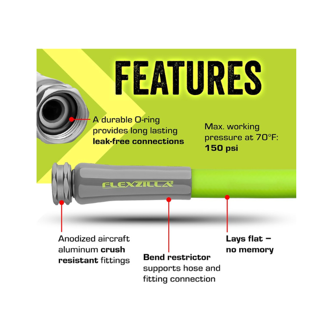 Flexzilla Garden Hose 5/8-Inch x 50-Foot is a lightweight, flexible, and kink-free watering hose designed for easy everyday use. Made from a premium hybrid polymer, it stays tangle-free, lays flat, and allows smooth handling and storage. Its crush-resistant anodized aluminum fittings provide long-lasting durability and leak-free performance, while the abrasion-resistant exterior withstands tough outdoor conditions. Perfect for gardens, lawns, and patios, this all-weather hose remains flexible in extreme temperatures and delivers reliable performance season after season.